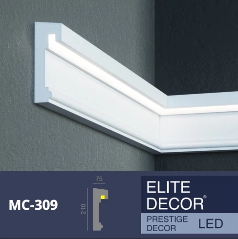 Az MC 309 díszléc jól illeszkedik modern és klasszikus környezetbe egyaránt. Könnyen vágható, festhető, valamint időjárásálló és karbantartásmentes, így beltéri és kültéri felhasználásra is alkalmas. Tökéletes választás, ha egy diszkrét, mégis látványos rejtett világítási megoldást keresel.