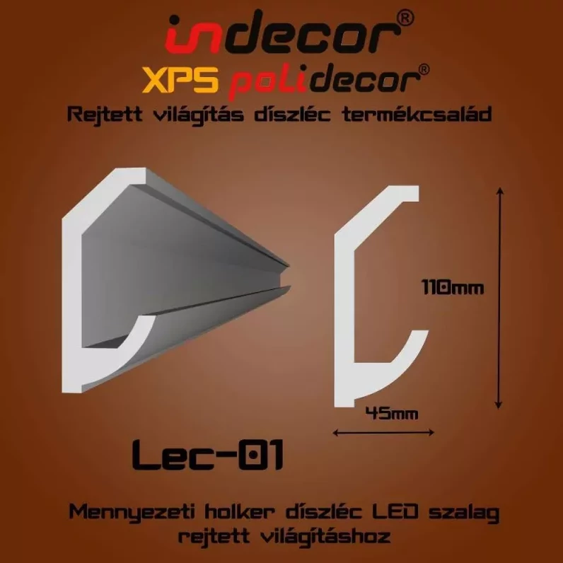 Ez a mennyezeti XPS díszléc elegáns és praktikus megoldást kínál a modern és klasszikus enteriőrök igényes kialakításához. Könnyű súlya és egyszerű szerelhetősége miatt gyorsan felhelyezhető a mennyezetre, és bármilyen színre átfesthető oldószermentes festékkel. A profil kialakítása lehetővé teszi rejtett LED világítás beépítését, amely hangulatos indirekt fényt biztosít bármely helyiségben.