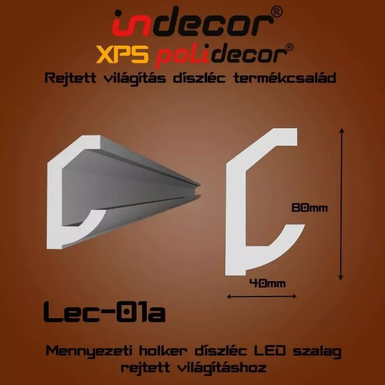 Ez a sokoldalúan használható XPS díszléc ideális választás mennyezeti és fali dekorációhoz egyaránt. Könnyű súlyának köszönhetően gyorsan és egyszerűen felszerelhető, majd oldószermentes festékkel bármilyen színre átfesthető. A kialakított csatorna lehetővé teszi rejtett LED világítás beépítését, amely modern, hangulatos fényhatást biztosít nappaliban, hálószobában vagy akár folyosókon is.