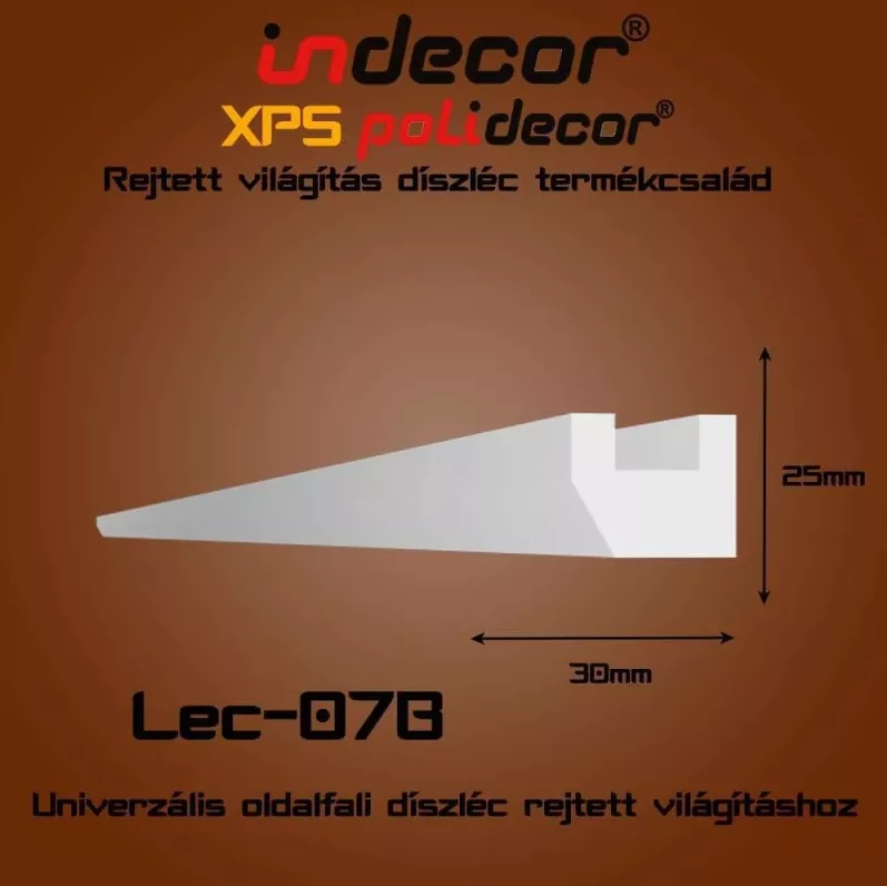 Ez a kompakt méretű XPS díszléc tökéletes választás falak dekoratív kiegészítésére, különösen kisebb helyiségekben vagy minimalista stílusú belterekben. A profil könnyen felragasztható oldószermentes ragasztóval, és bármilyen színre átfesthető oldószermentes festékkel, így egyszerűen a helyiség színvilágához hangolható. A kialakított vájatnak köszönhetően LED szalag is elhelyezhető benne, amely modern, hangulatos fényhatást biztosít a fal mentén.