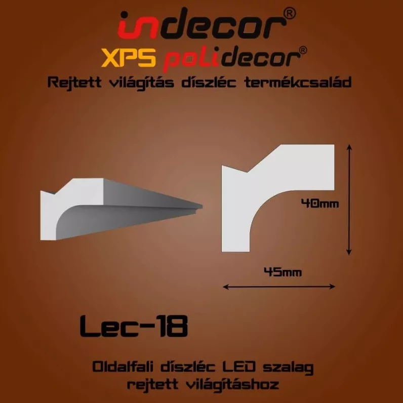 Ez a 200 × 4,5 × 4 cm-es XPS díszléc letisztult és diszkrét megjelenést biztosít falak dekorálásához, miközben lehetőséget ad rejtett LED világítás elhelyezésére is. Kis mélységének és kompakt kialakításának köszönhetően ideális választás olyan helyiségekbe, ahol elegáns, mégis visszafogott fényhatást szeretnénk kialakítani. A felület oldószermentes festékkel könnyedén átszínezhető, így bármilyen enteriőr stílusához harmonikusan illeszthető.