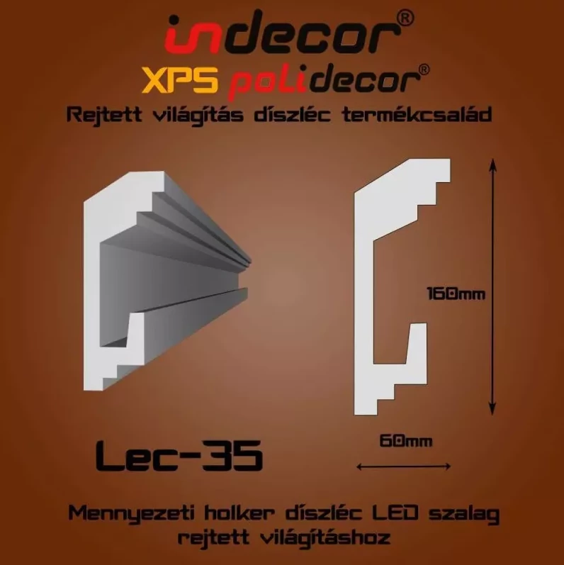 Ez a 16 cm magas XPS oldalfali díszléc ideális választás modern, letisztult enteriőrök kialakításához. Könnyű súlya és nagy szilárdsága miatt egyszerűen felszerelhető, a rejtett LED világítás számára kialakított csatorna pedig különleges hangulatvilágítást tesz lehetővé. A díszléc oldószermentes festékkel bármilyen színre átfesthető, így könnyedén illeszthető a környezet stílusához.